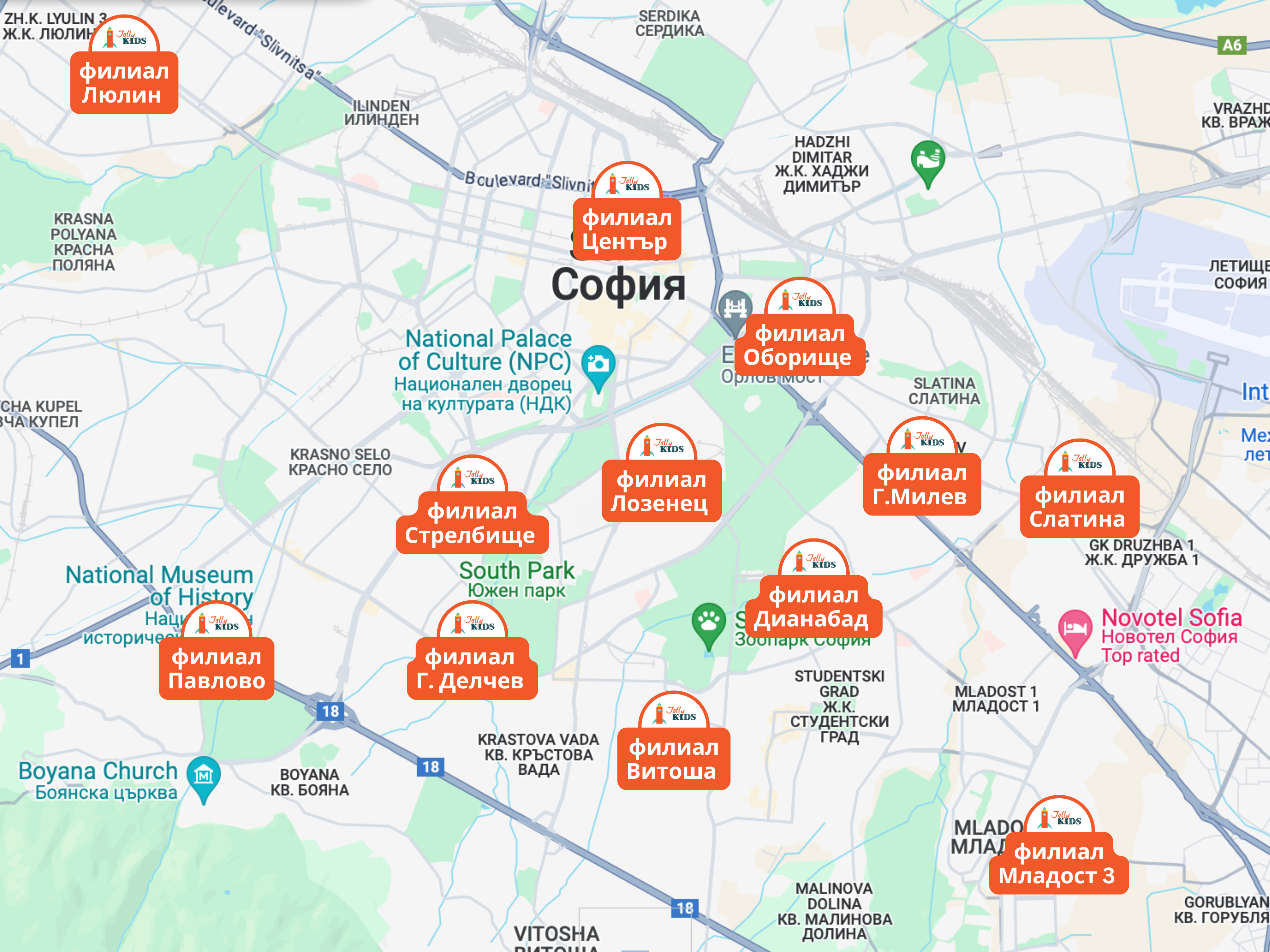 Разполагаме с 12 удобни локации в София – от Павлово до Оборище, от Люлин до Малинова долина